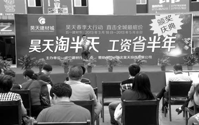 本报讯 5月8日下午3时, 伴随着优美动人的开场舞,昊天建材城五一建材节活动针对顾客的购物抽奖活动在昊天建材城广场隆重上演,在一场公开、公平的抽奖仪式上,现场抽出了266个奖项,至此,此次五一建材节活动圆满落幕。