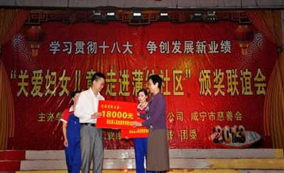 5月10日,蒲纺工业园区举行“关爱妇女儿童.走进蒲纺社区”颁奖联谊会,湖北福人药业股份有限公司向蒲纺捐赠现金18000元以及价值18000元的药品,表达了对妇女儿童的一片爱心。 艾菊桂 吴莉萍\摄