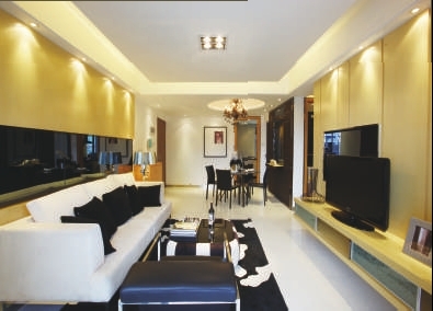 王旭介绍,目前很流行家中没有主光源,全部用辅助光源照明。由于吴女士家的吊顶大部分采用的是吊全顶,所以特别适合做辅助光源。运用反灯槽的灯光和局部射灯进行搭配,使得整个空间更加靓丽缤纷。让色彩单一的空间变得更加生动灵活。