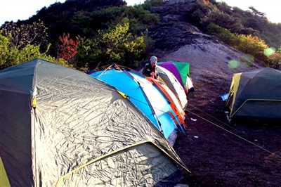 夜色渐暗,一轮明月升起,照得整个山峦如白昼。大家支好帐篷,但是并无意休憩。一个个拿起相机,架好三角架,拍起了夜景。星星划过夜空,璀璨夺目,相机的“咔咔”声定格着一幕幕的美丽和神秘。隐约的鸟语、柔柔的山风,伴随着我们怡然入梦,一群群杜鹃仙子邀我们一道次日早上到山顶看日出……