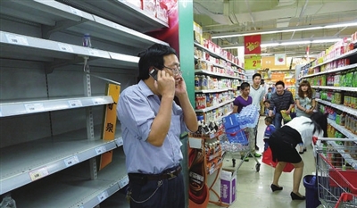 近日,江苏仪征市出现市民争抢饮用水情况。据了解,当日凌晨一艘载有12500吨石灰石的海轮在碰擦南京长江大桥桥墩后沉没,下游市民担心水质受到污染而竞相去超市购买饮用水。