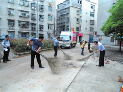清除小区牛皮癣、捡拾绿化带内的垃圾、打扫社区大院儿……连日来,咸安区财政局干部职工自带扫把、铁铲等工具来到永安办事处三元社区桂鑫小区打扫卫生。