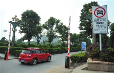 日前,记者在市人民广场出入口看到,路口分别修建了自动车拦杆。据了解,夏季晚上市人民广场人流增多,为保障广场道路行人安全,市政府对广场实行机动车辆限时通行,时间为晚间18时至23时。
