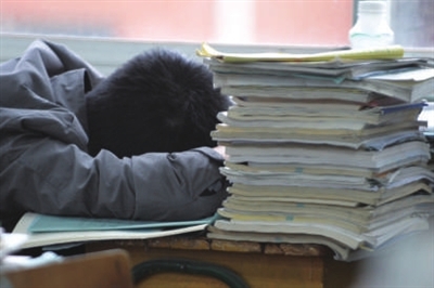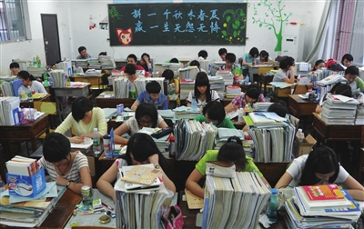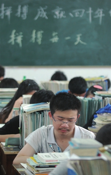 “拼一个秋冬春夏,赢一生无怨无悔。”寂静的教室内,黑板上励志的标语格外醒目,书本叠成石山的背后,奋笔疾书的写字声和翻书声此起披伏。