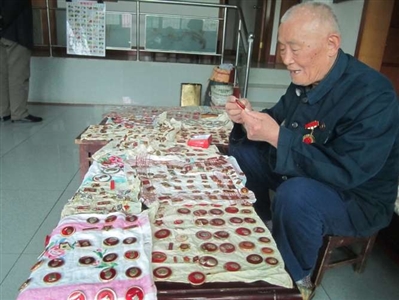 永安办事处双龙社区的肖慕华老爹爹,今年已83岁高龄。从1953年开始,他用60年的时间,收集了千余枚毛主席像章。这些像章包括有金、银、铜、搪瓷等30多种材质,最小像章直径只有2厘米,最大像章直径十几厘米。