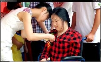 5月12日,山东一对好心夫妻得知汤文辉的情况后,赠送给她一个电动轮椅,可是她还是无法走出大山,看看外面的世界。5月24日,了解情况到的咸宁义工,驱车到汤文辉的家,接她来到了咸宁。