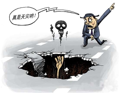 对于事故,代表深圳市官方发言的横岗街道办副主任于致昀认为“肯定是天灾”。但华南理工大学建筑与城市设计研究所副所长周剑云不容置疑地说:这不是自然坍塌,“不是天灾,这是人为事故。”一方面,当初道路工程建设时,没有充分考虑地下排污渠这种特殊条件;另一方面,道路建设完成后,有关部门并没有对该地进行有效地定期安全排查和维护。 据大江网