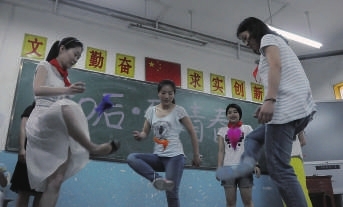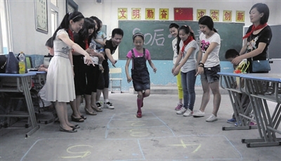 “六一”儿童节临近,近日,安徽合肥蜀山区合作化南路社区的一群“80后”带上红领巾走进“教室”,滚铁环、编花绳、踢毽子……尽兴重温了一把“童年”的味道。