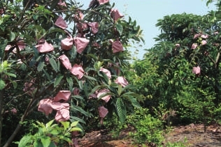 聊着聊着,我不禁好奇地问道,你们为什么用纸袋将枇杷果包上?