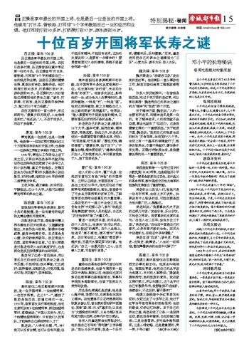 十位百岁开国将军长寿之谜