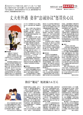 丈夫有外遇妻拿“忠诚协议”惩罚负心汉
