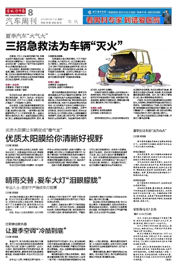 史永朋表示,夏季车辆工作条件恶劣,水温高、爆胎、自燃经常发生,行车时应更加谨慎,还应针对夏季的特殊情况对车辆进行保养,并通过使用中的蛛丝马迹来判断车辆是否已经出现异常,及时进行处理。
