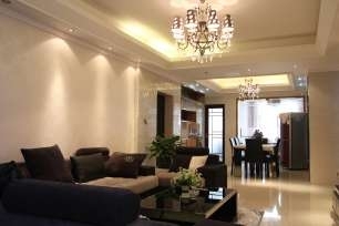 户主王女士介绍,之所以设置3个吊顶,是因为客厅空间较大,所以在客厅划分了一块和餐厅一样大的区域出来,做为一个休闲运动区域,平时就可以在这一块空空的位置边看电视边做运动。