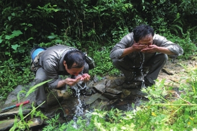 嘴上一边聊天,脚下却一点也不见慢。上山的路坡陡弯多,施银安和吴三红都是年过半百的人了,却俨然健步如飞。随行体验记者都不由得累得气喘吁吁,实在撑不住了只得连声叫停歇息一会儿。