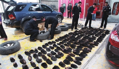 近日,满洲里海关在该关公路口岸一辆进境俄籍客车的轮胎中查获棕熊熊掌213只,是迄今为止全国最大的走私熊掌案件。