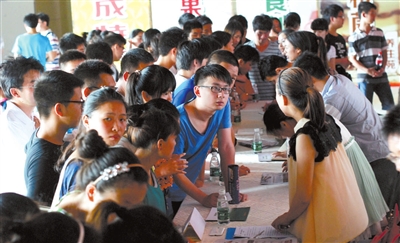 7月5日上午9时许,由本报主办的2013年咸宁大学生暑期社会实践活动在天成特产城启动。活动中,13家爱心企业提供了200多个岗位,吸引了150名大学生前来应聘,56名大学生首批“签约”上岗。 赵骥 方达星 袁昊/摄(详见4、5版)