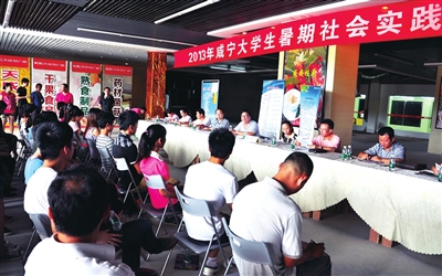 7月5日上午9时许,由本报主办的“2013年咸宁大学生暑期社会实践活动”在天成特产城启动。活动中,13家爱心企业提供了200多个岗位,吸引了150名大学生前来应聘。当天,56名大学生与爱心企业签约上岗。