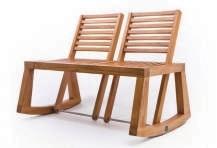 木制座椅、公园长凳、摇摇椅——这是一款双向视角摇摇椅,由于靠背的一端活动性地固定在座椅下方,因此只需简单的切换一下靠背的方向,两个人既可以并排而坐,又可以相向、面对面的摇摆着椅子倾心交谈。