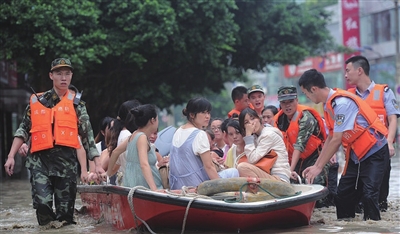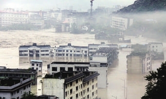 近日,四川绵阳、彭州、都江堰、金堂等地因暴雨发生洪涝灾害。而北川老县城地震遗址也遭遇50年最强洪水,北川大酒店遗址、遇难公墓等重要保护地全部被洪水淹没。左上图为消防官兵用冲锋舟转移孕妇。