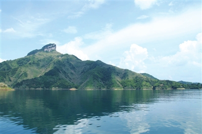 在游艇上,我们看到远处一座高耸而形象怪异的山,便向船主打听。船主告诉我们,那就是棺材山,传说那山上有一处好风水,哪家若是葬到了,他们家就要出“天子”。可惜呀,这么多年过去了,没有一家能够葬棺材山的风水。他又戏说道,不过,这“棺材山”谐音官财山,我们青山镇倒是出了不少的官员干部;读书读到博士的大有人在;在外做生意成了百万富翁的更是不计其数。