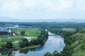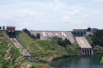 顺着公路继续行走,便到了青山水库主坝。盛夏时节,我们漫步在坝上,微风吹拂,觉得有丝丝凉意。放眼坝下的青山河,两岸树木郁郁葱葱,弯弯曲曲的河流在阳光的照射下宛如向远方舒展的银丝飘带。远眺库区,青山与绿水相连,偌大的水面上,渔船游艇穿梭,一望无边,犹如天池。