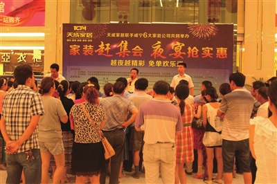 本报讯 (记者 鲁芳 通讯员 邓珍)“满5000减1000”、“购物返现金”……12日晚,天成家居隆重推出了一场家居夜宴团购促销大型活动,在近3个小时的时间里,商场销售额突破800万元,创造了业内夜场活动销售新高。