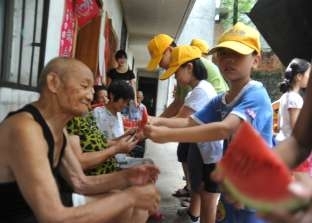 表演结束后,小朋友们将本报准备的西瓜,一一送到了老人们的手上。面对一些行动不便的老人,小朋友们还亲手喂他们吃下。“小朋友们真乖,好懂事!”老人们乐呵呵地赞道。
