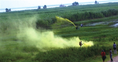17日上午,赤壁市卫生局组织血防站工作人员到赤壁镇东风村进行药物灭螺。赤壁镇东风村是血吸虫疫区之一,当天,该局还组织医务人员到东风村免费为村民检查身体,预防血吸虫病。 艾菊桂/摄