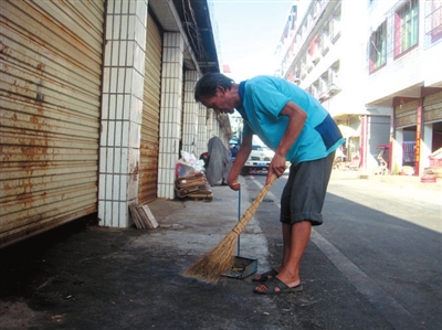 在咸安区宏大市场,人们每天会看到一位右手残疾的老人,穿梭于宏大市场的小巷里清理垃圾。他就是咸安区永安办事处南大街社区的创卫监督员郭祥友。