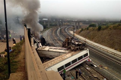 新华网消息 西班牙一列客运列车当地时间24日晚间行驶到西北部加利西亚地区时意外脱轨,目前已造成至少78人死亡,另有100多人受伤。当地媒体普遍怀疑超速是造成这一重大伤亡事故的原因。