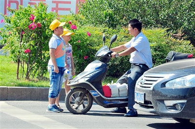 “那这样吧,给你扇会儿,再给我自己扇会儿,这样我们俩都不热了。”说完,陈诗怡便又“开工”了。虽然扇扇子并没有起到任何实际的作用,但站岗女交警还是很开心地对她说;“小朋友,你很有爱心哦!”