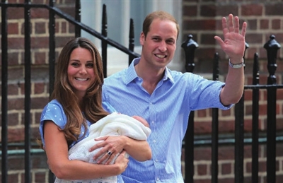 7月23日,威廉王子和怀抱小王子的凯特王妃在英国伦敦圣玛丽医院门前亮相。小王子是继查尔斯王储、威廉王子之后的英国王位第三顺位继承人。这是100多年来英国王室首次出现君主和准君主“四世同堂”。