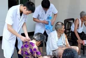 日前,咸宁麻塘风湿病医院的医生来到咸安横沟福利院,为老人按摩、贴三伏药,给他们带去了消暑物资,让老人在炎炎夏日感受到丝丝清凉。(方达星)