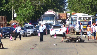据现场的目击者介绍,当时听当一阵剧烈的刹车声,他循声望去,就看到一辆挂车与一辆摩托车发生碰撞后,又撞向迎面驶来的乡镇客车,摩托车和车主被撞飞十余米。随后,摩托车发生自燃。