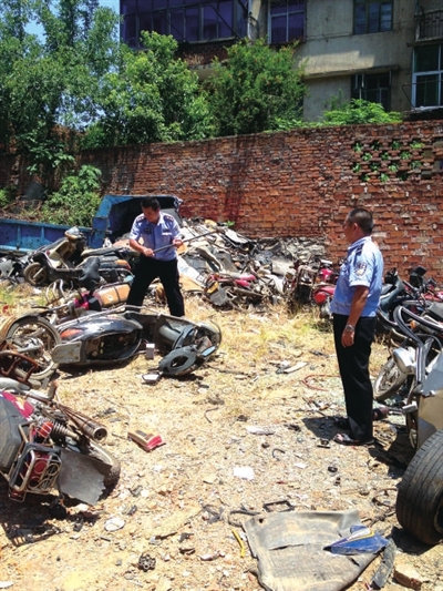 7月26日,赤壁市交警大队二中队对30台报废摩托车和一批摩托车遮阳伞进行集中销毁。据悉,这些报废车辆以及遮阳伞是交警大队二中队近两年来依法没收的,民警将这些报废车运到轧钢厂进行销毁处理。 艾菊桂 彭海社 张薇/摄