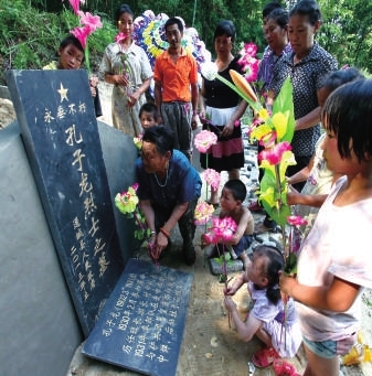 (图为后人向烈士献花圈)