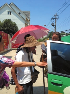 由于一时无法与老爹的家人取得联系,且老爹的气色不好,程晓华决定打的护送老爹回家。随后几名社区干部拦下一辆出租车,将老爹搀扶上车。的哥刘师傅也是个热心人,得知几名社区干部是护送迷路老爹回家时,一路上停停走走,打听老爹的住址。半小时后,程晓华问到一个认识老爹的的年轻人,在他的带领下,终于将老爹安全送到家。