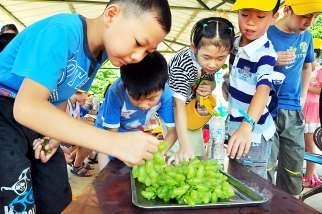 “小朋友,知道什么样的葡萄是成熟的吗?知道什么是无公害的绿色食品吗?”葡萄基地负责人说道。“颜色是红色的葡萄当然就是成熟的。”“施了农家肥的、不打农药的就是绿色食品。”小朋友们争先恐后地回答道。