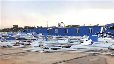 昨日上午,记者在来到了事发地,咸宁经济开发区二期(栗林)永安路和龟山路还建点现场。记者看到,由于项目施工刚刚开始,平坦开阔的厂区工地上星罗棋布着十几处活动安置板房,一眼望去,除少部分板房外,大多数板房已经被风吹得面目全非。