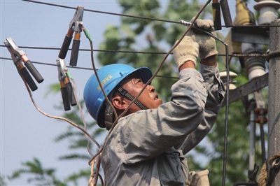 盛夏酷暑,连续的高温使我市用电负荷持续攀升,当人们享受着空调所带来的丝丝凉意时,在似火的骄阳下,电力工人正挥汗如雨,经受着酷热天的“烤”验,保障电网安全迎峰度夏,不让居民受到断电困扰。近日,记者走近电力工人,零距离体验他们的汗水人生。