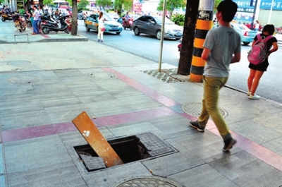 该井坑呈长方形,边长20厘米左右,宽10厘米左右,井坑不是很深,从此路过的行人都绕着走。附近居民纷纷表示,如果在夜晚,行人一不小心就有可能发生危险,希望有关部门能及时进行修复。另外也提醒广大市民,对于市区公共建设要积极爱护,方便自己,方便大家。