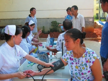 8月10日,温泉办事处南昌路社区80多位居民来到该社区的张代新村,参加免费体检活动。