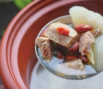 粥王府的雪梨百合老鸭汤,汤色清透,浓而不腻,入口鲜美。“除了味道鲜美外,老鸭营养丰富,富含蛋白质、维生素、钙、磷、铁等,而且性寒凉,最适合体热上火的人,对女性尤其有滋阴养颜的功效。”粥王府酒店大厨介绍,鸭子肉性昧甘、寒,入肺胃肾经,和雪梨、百合一起煲出来的汤有滋补、养胃、补肾、消水肿、止热痢、止咳化痰等作用,是养生的菜品的不错选择。