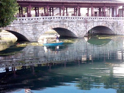 入伏以来,持续的高温天气让汀泗河里的水草疯长,加上漂浮的垃圾杂物,河面环境急剧恶化。汀泗桥镇城建办自7月底起,组织专人打捞河面垃圾,割除水底杂草。目前,河面杂物及水草已基本清除,河面再现靓丽景观。杨斌张剑/摄
