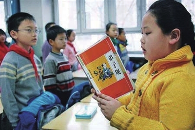 记者在很多学校了解到,中小学近年来开始注重国学教育,要求学生读史诵经。许多学校早读会安排读国学。有的学校在大课间还实行全校背诵《三字经》。