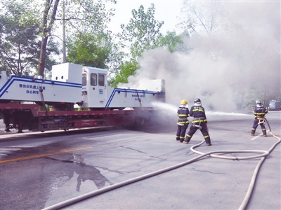 | 挂车失火 百万配件受威胁 消防施救 10分钟化险为夷 |