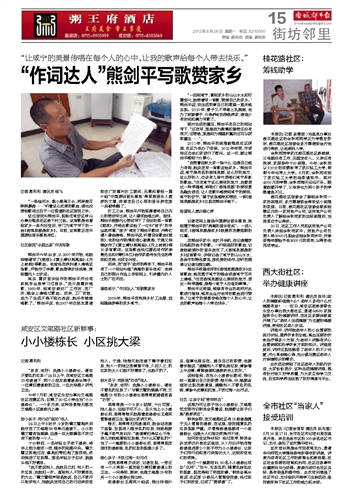 “一条淦河水,像小路弯又长,两岸桂花阵阵飘香……”听着这么优美的歌曲,谁也没想到歌词出自于一位普通的社区居民之手。