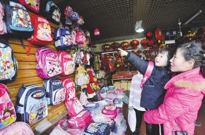 近日,学校周边文具店、超市文具专柜都纷纷挂上了图案各异、款式不同的书包及其他各种文具。