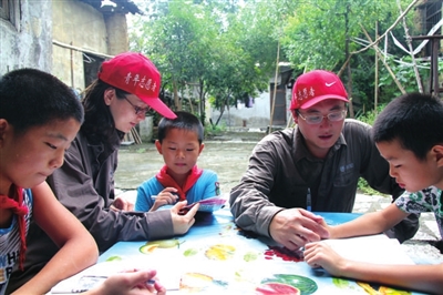 8月25日,赤壁市供电公司团委利用双休日,组织青年志愿者开展关爱留守儿童活动。图为青年志愿者在古镇羊楼洞辅导留守儿童完成暑假作业。