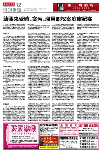 薄熙来受贿、贪污、滥用职权案庭审纪实